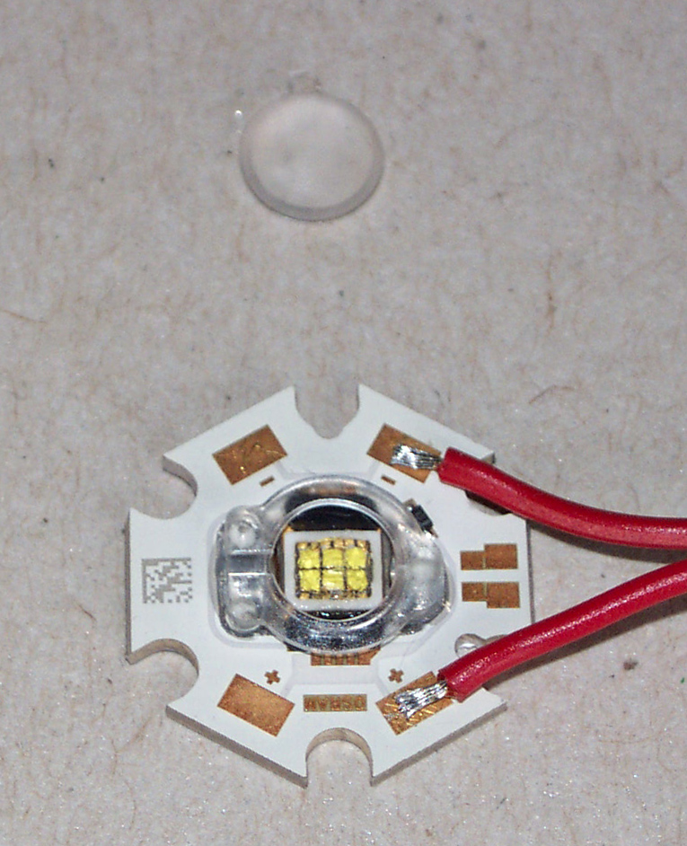 Leider ist der Emitter wie gesagt im Moment nur mit Linse erhältlich, aber es gibt einen Weg ihn umzubauen so wie es schon beim Vorgängertyp möglich war. Natürlich sollte man sich vor der Operation darüber im Klaren sein, das die Garantie damit erlischt und es durchaus möglich ist den Chip dabei zu killen. Daher übernehme ich keine Erfolgsgarantie. :-)